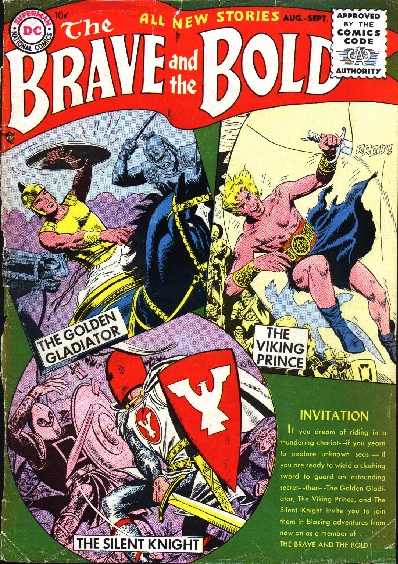 The Brave and the Bold was a DC Comics comic book which was published from August 1955 to July 1983. Originally an anthology series featuring tales of adventure from past ages (Silent Knight, Viking Prince, Robin Hood), it was reinvented (beginning with #25) as a try-out title for new characters, and again (beginning with #50) as a venue for team-ups between established characters, among which issues featuring Batman teaming up with various other characters soon came to predominate. Batman team-ups featured in #59, #64, #67-71, #74 and then every issue to the end of the run. The final issue, #200, tied the title's Batman-team-up present with its new-character-introduction past with a story introducing the Batman-led superhero team the Outsiders. 195 ISSUES