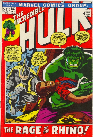After nuclear physicist Dr. Robert Bruce Banner is caught in the blast of a gamma bomb he created he is transformed into the Hulk a raging monstrosity. The character both as Banner and the Hulk is frequently pursued by the police or the armed forces often as a result of the destruction he causes. While the coloration of the character's skin varies during the course of its publication history the Hulk is most often depicted as green. 421 ISSUES